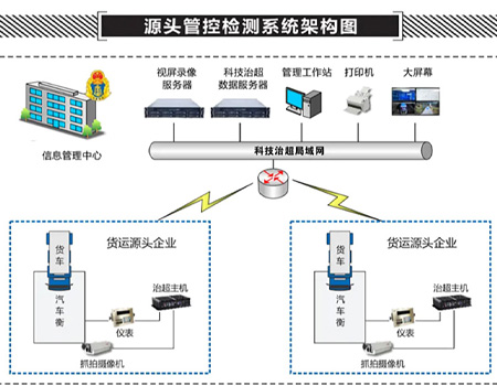 源头治超系统是从源头企业采集车辆的超限超载信息,通过互联网将其发送到远端服务器。远端服务器部署在源头企业所在的县、市级治超中心通过对源头企业超限以及物流信息的监查,上级单位可以有效的管理、整治超限超载现象。加强了管理上的一致性,缩短了决策者对生产的响应时间,提高了管理效率,降低了运行成本,促进了企业信息化管理。